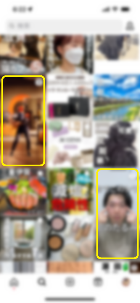 ▼「発見」タブ。黄色い枠内がリールです。他より目立つことが分かります。